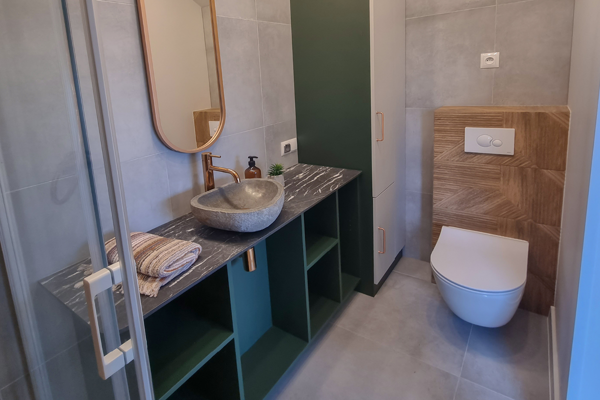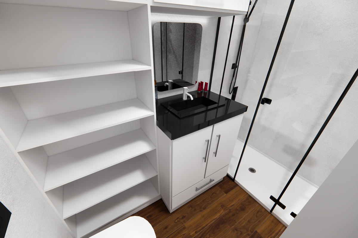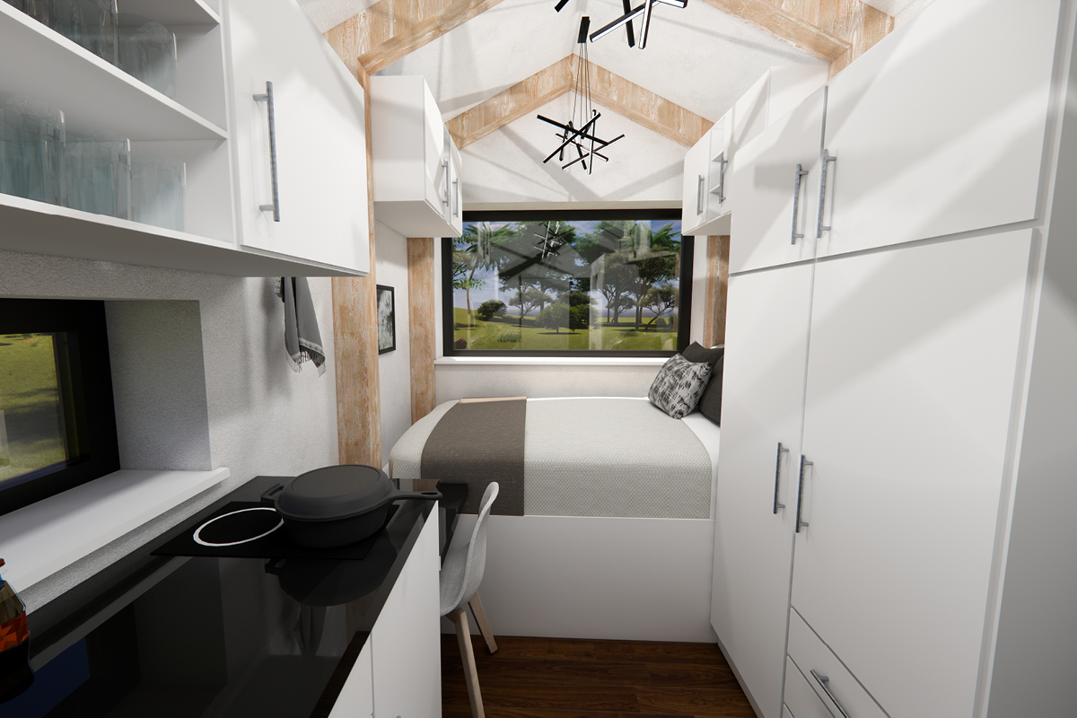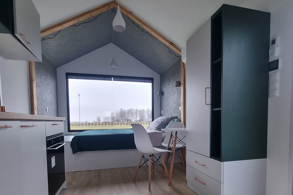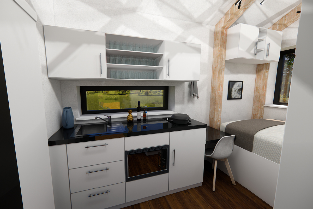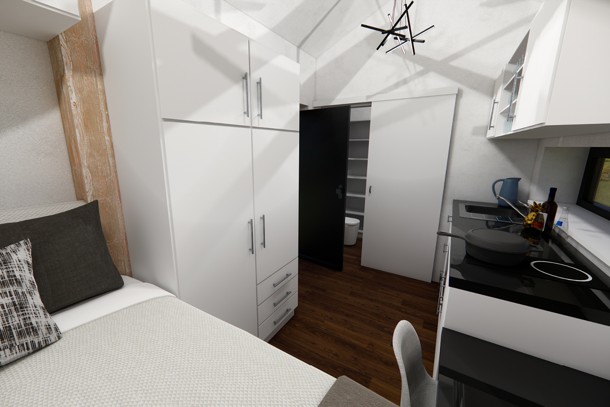 Bei dieser Hauslösung stand die Umsetzung eines durchdachten und modernen Wohnkonzepts im Vordergrund – auf kompakten 15 m². Ziel war es, eine funktionale und zugleich ästhetische Lösung zu schaffen, die den individuellen Wünschen unserer Kundschaft gerecht wird. Das Ergebnis ist ein stilvoll gestalteter Raum, der Komfort, Effizienz und Design harmonisch vereint.