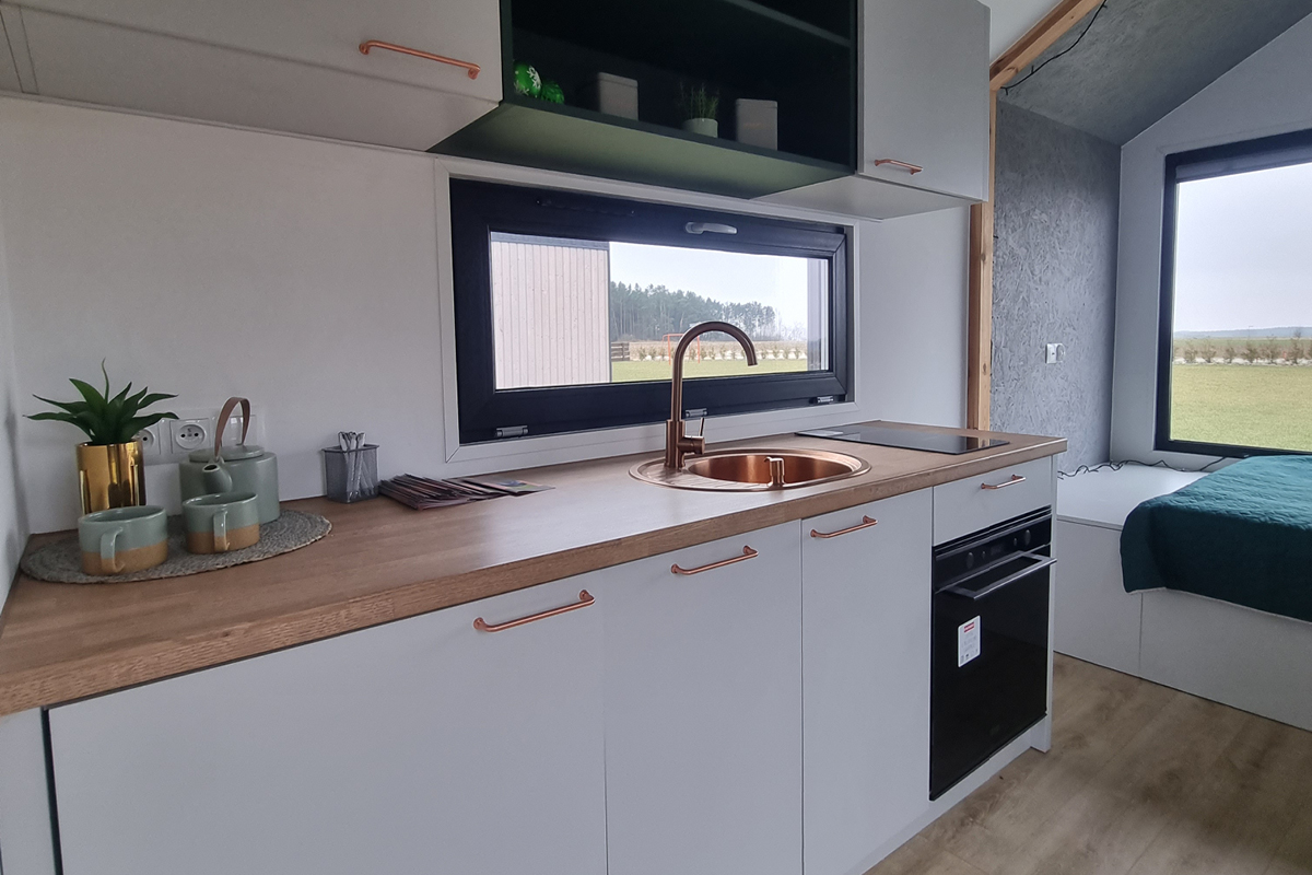 Die TH18 wurde mit Blick auf Modularität, Anpassbarkeit und Alltagstauglichkeit entwickelt. Jeder Bereich wurde optimal genutzt – von maßgeschneiderten Einbauten bis hin zu intelligenten Lichtlösungen. Die reduzierte Grundfläche wird durch eine klare Linienführung und eine ausgewogene Materialwahl ideal ergänzt. Dieses Haus steht exemplarisch für unsere Leidenschaft, funktionale Räume mit Charakter zu gestalten.