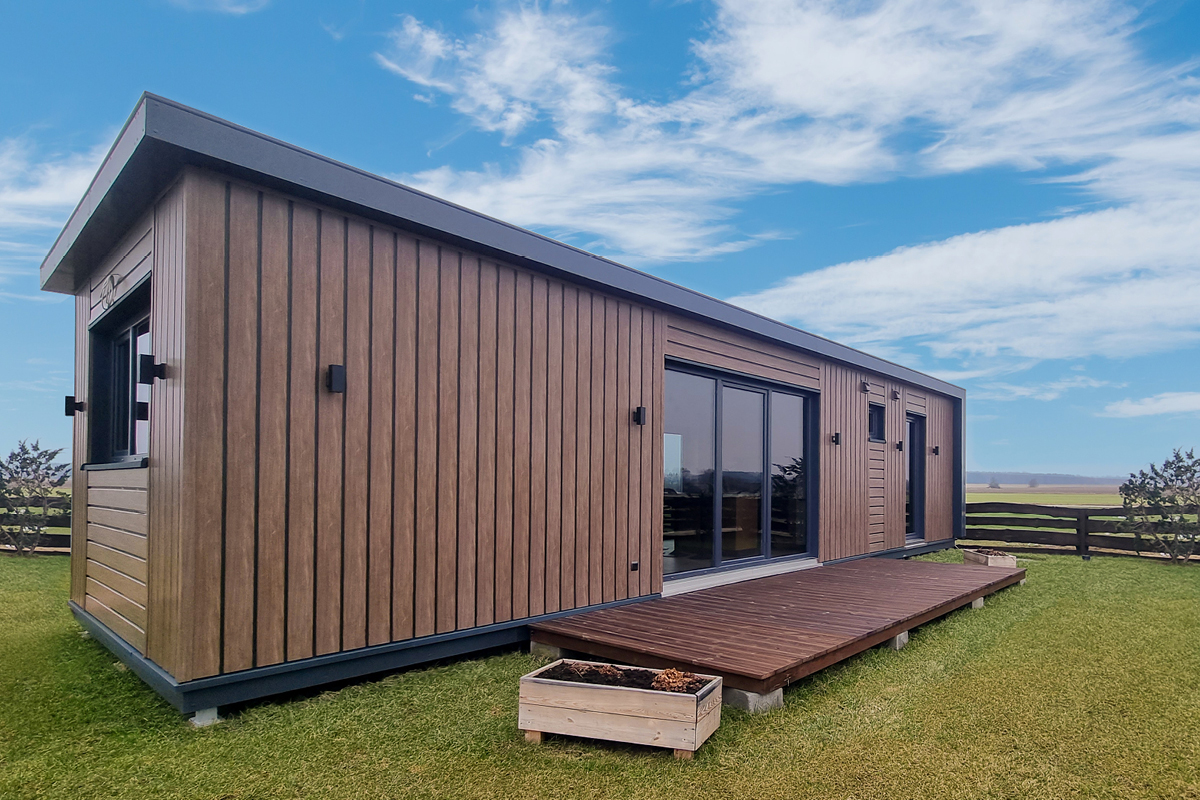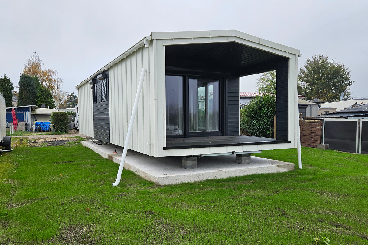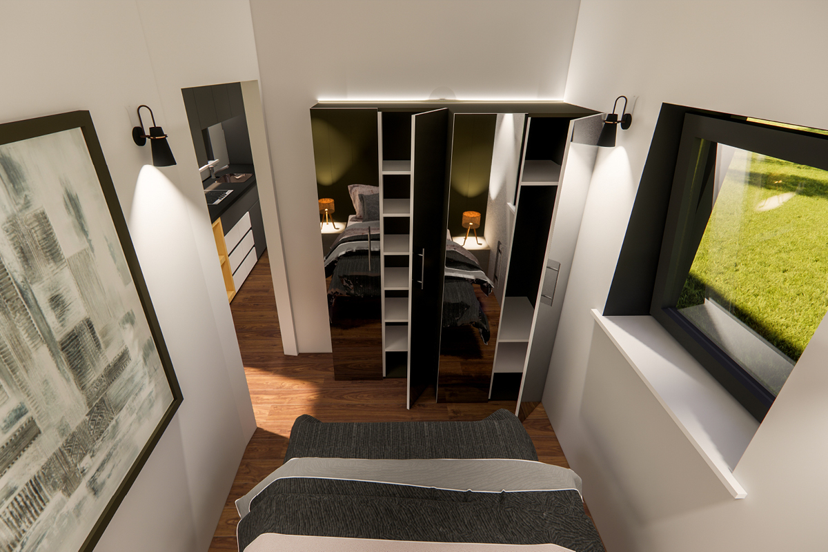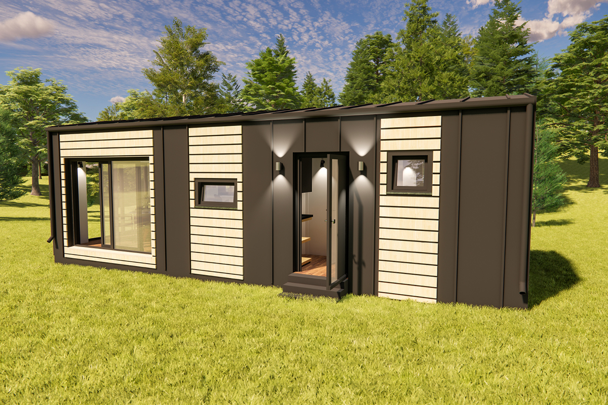 Unser Tiny House 40 bietet großzügige 40 m² Wohnfläche mit modernem Design und optimaler Raumnutzung. Voll ausgestattete Küche, gemütliches Schlafzimmer, Wohnzimmer mit großen Fensterelementen, Esstisch, Badezimmer und smarte Stauräume sorgen für ein komfortables Wohngefühl.
