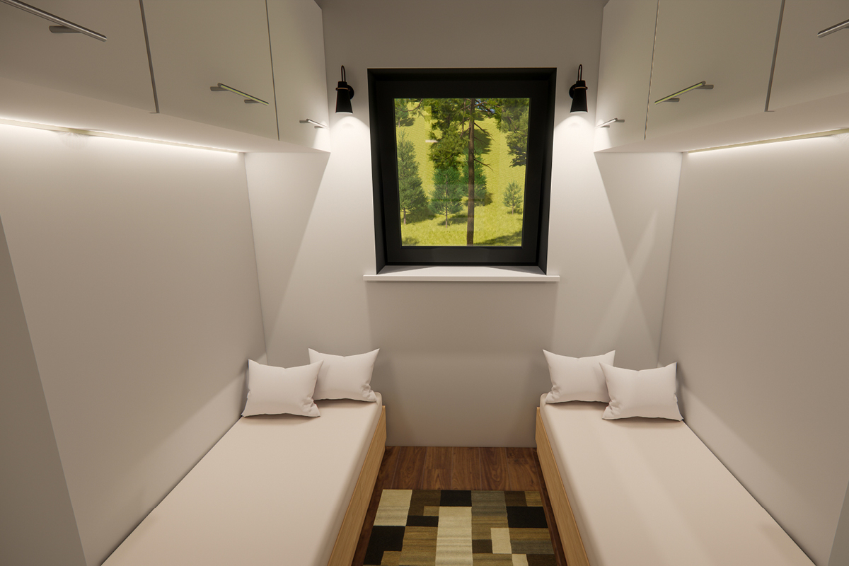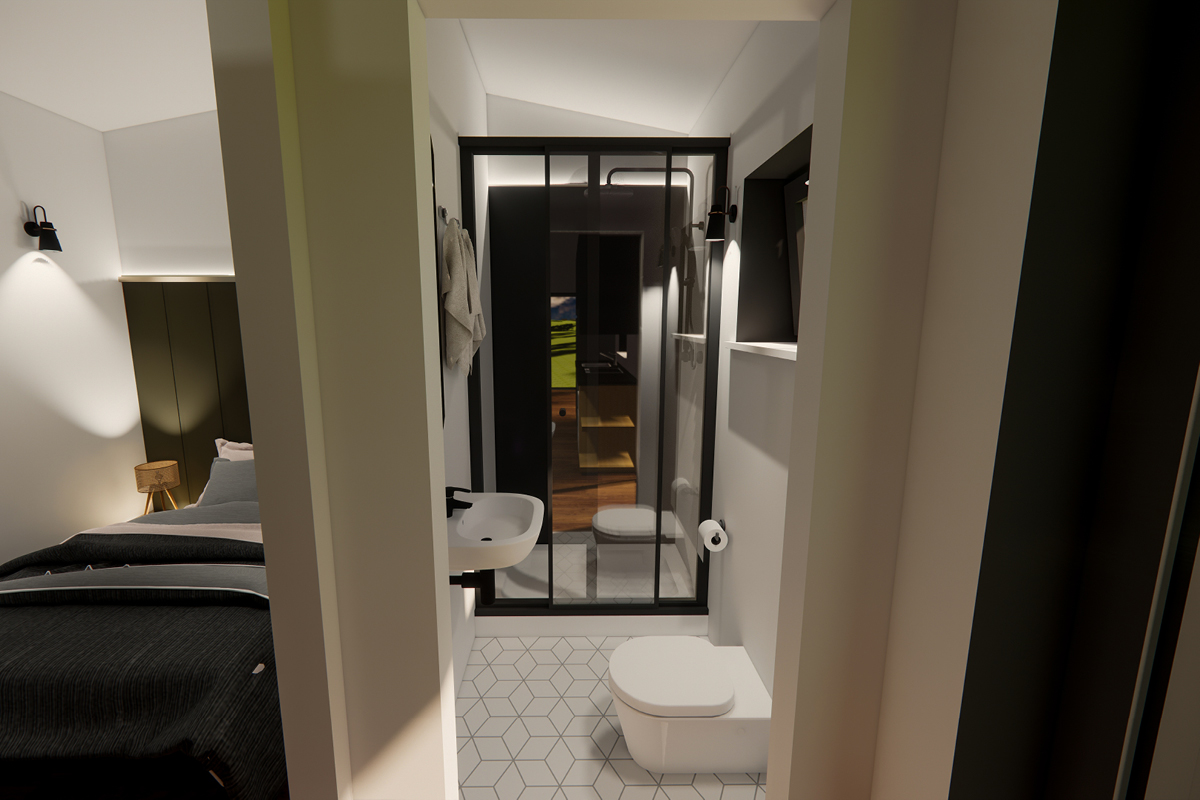 - Optionales Mezzanin als zusätzlicher Schlaf- oder Arbeitsbereich auf halber Etage